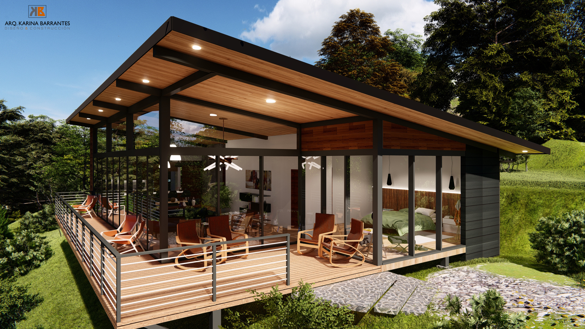 Es una residencia ubicada en la zona alta de Atenas. Su diseño corresponde al aprovechamiento de las vistas hacia las montañas y un lote con topografía pronunciada. Cuenta con un espacio social amplio que se conecta con un largo balcón y una terraza. Posee un dormitorio principal con w.closet y baño completo. Además, dormitorio secundario, área de lavado y baño completo. Para un total de 160 m Fotos.