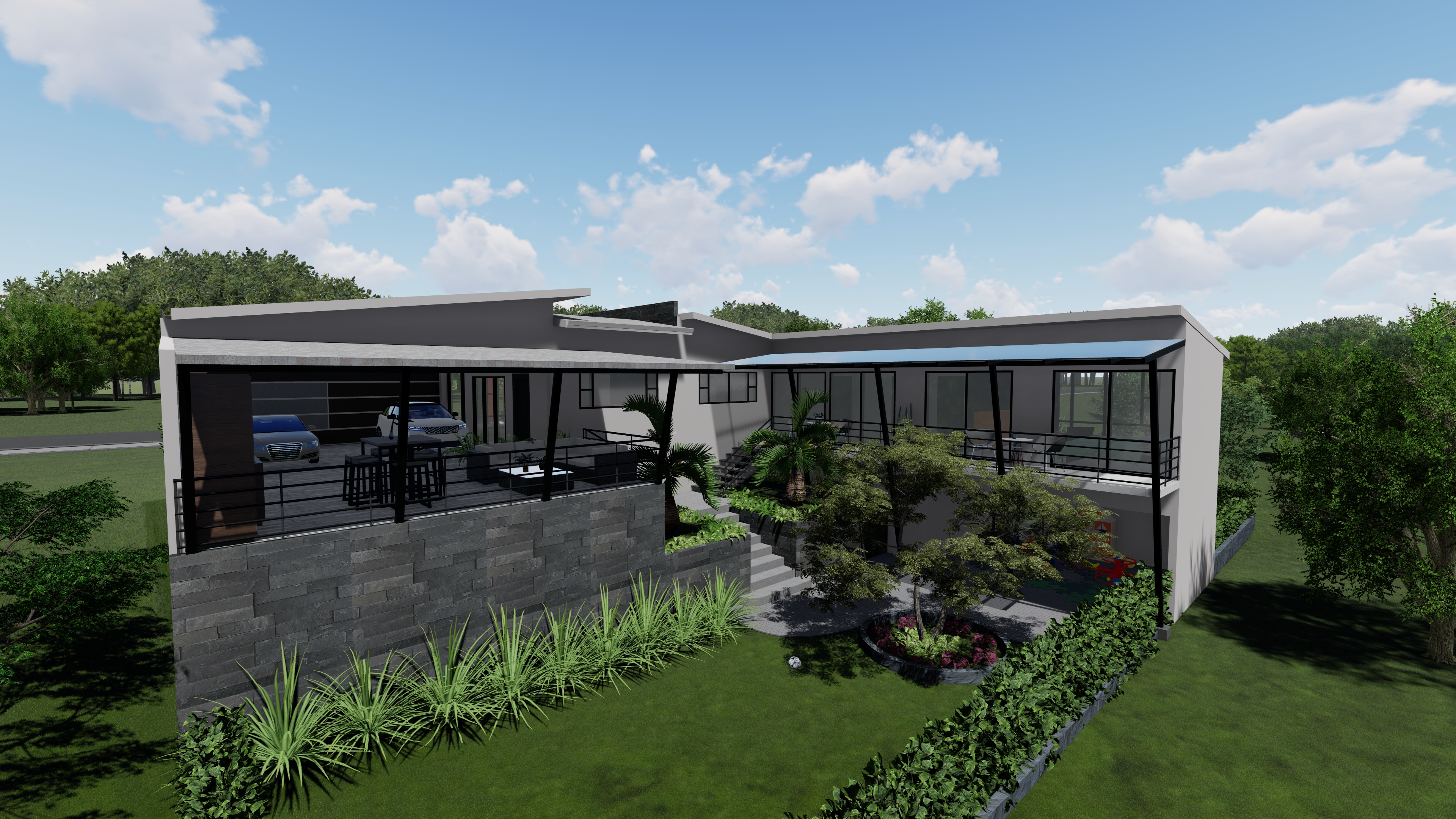 ESTA CASA SE DISEÑA PENSANDO EN UNA FAMILIA QUE LES GUSTA LA PRIVACIDAD, POR LO QUE SE CREA ENTORNO A UN PATIO INTERNO DESDE DONDE SE GENERA EL RESTO DE LA VIVIENDA. SIENDO PUNTOS FUNDAMENTALES: LA VISTA HACIA EL VALLE CENTRAL, LA VENTILACIÓN Y LA ILUMINACIÓN NATURAL